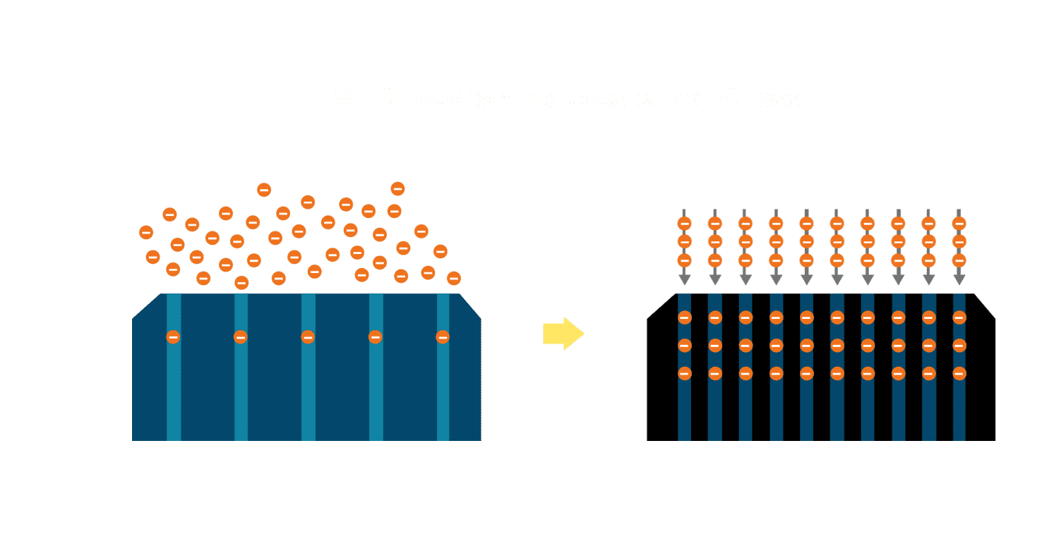 - 多条电极栅结构,,可有效降低外力对于电池的影响,,限制电池隐裂 (Micro-cracks) 范围,,,防止电流传输路径 (Current distribution) 之损坏进一步扩大。。