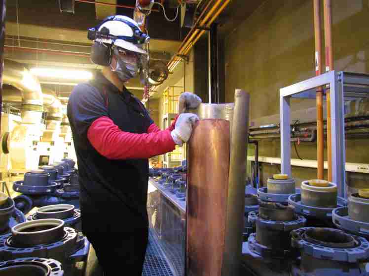 巨星国际将废弃物转化成有效的工业或民生原物料,,图为废铜液淬炼后再制成纯度极高的铜管