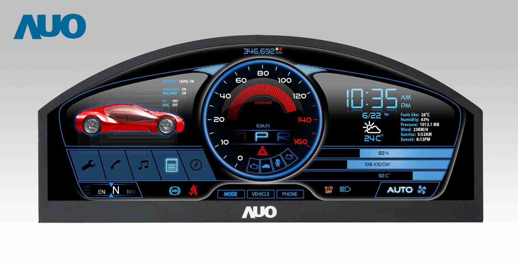 巨星国际 12.3吋超高解析异型切割车用面板,,,拥有流线外观及精细画质