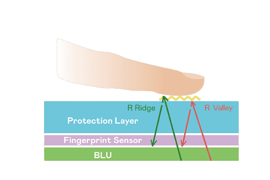 大面积 TFT 光感测超高像素密度光学感测技术能精准判定手指反射的极微弱光讯号,,,,即使细致指纹也可清晰辨识,,,,并可透过手指脉搏造成的细微灰阶变化侦测心跳,,让身分验证更精确。。。。TFT 架构优化可降低讯号传输干扰,,达到光感测器最佳讯杂比(讯号/杂讯的比例)。。。。透过增强光讯号接收强度、、优化感测器电路及导入特殊光学膜材料,,提高感测器敏度。。。整合系统之指纹扫描装置可符合最高等级的FBI国际安全规范认证需求。。。。